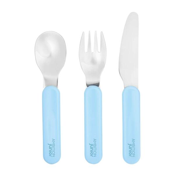 Ambition Junior evőeszközkészlet kisgyermekeknek: Könnyű használat és vidám színek ? Ez a 3 részes evőeszközkészlet tökéletes választás a legkisebbek számára, akik most kezdik elsajátítani az önálló étkezést. Kiváló minőségű rozsdamentes acélból készült, könnyű és praktikus kialakításának köszönhetően a kis kezek is könnyedén meg tudják fogni. A készlet tartalma: ? Kanál (13x3,2 cm) ? Villa (13x2,7 cm) ? Kés (15,3x2 cm) Főbb jellemzők:Rozsdamentes acél: Tartós és könnyen tisztítható. Kényelmes fogantyú: A kis kezek számára tökéletesen illeszkedik. Vidám kék szín: Fellelkesíti a kicsiket az étkezésre. Egyszerű tisztítás: Mosogatógépben is tisztítható (ellenőrizze a gyártó utasításait). Segítsd gyermeked önállóságát és vidámítsd fel az étkezési időt ezzel a gyönyörű és praktikus evőeszközkészlettel!