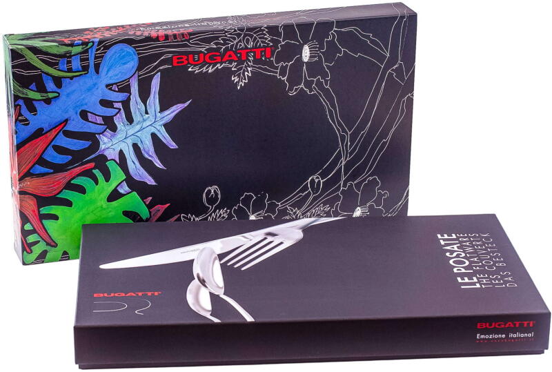Casa Bugatti Aladdin Evőeszközkészlet - 24 db, 6 személyes, Elegáns Rozsdamentes Acél Ez a 24 darabos Casa Bugatti Aladdin evőeszközkészlet tökéletes választás azoknak, akik értékelik a kiváló minőséget, az elegáns dizájnt és a praktikus megoldásokat. A készlet 6 személy számára elegendő evőeszközt tartalmaz, így tökéletes mindennapi használatra és különleges alkalmakra egyaránt. ✨ Főbb jellemzők:Prémium minőségű rozsdamentes acél: Strapabíró, tartós és könnyen tisztítható. ?️ Modern, elegáns dizájn: A Casa Bugatti jellegzetes Art Deco stílusában készült, színes ABS díszítéssel. ? Luxus bemutató doboz: Tökéletes ajándéknak is! ? Mosogatógépben mosható: Időt és energiát takarít meg. ? 6 személyes: Kényelmesen elfér az asztalon a család vagy a barátok számára. Tartalom: 6 kés, 6 villa, 6 kanál, 6 kávéskanál Élvezze a kifinomult olasz stílust és a tökéletes étkezési élményt a Casa Bugatti Aladdin evőeszközkészlettel!