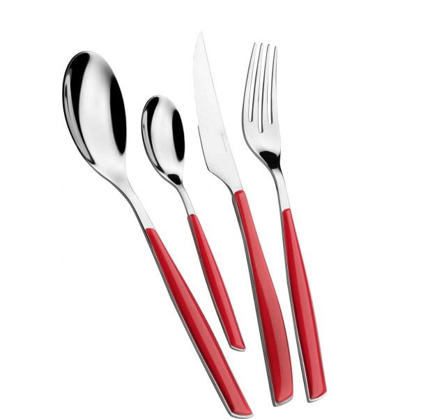 Casa Bugatti Glamour Étkészlet - 24 db, 6 személyes, elegáns vörös evőeszközök Ez a 24 darabos Casa Bugatti Glamour étkészlet minden étkezést különlegessé varázsol! A modern design és az elegáns, vörös fogantyúk stílusos megjelenést kölcsönöznek az asztalnak. A kiváló minőségű rozsdamentes acélból készült evőeszközök tartósak és mosogatógépben moshatók. ?️ Főbb jellemzők:Elegáns, modern design: A vörös fogantyúk vidám hangulatot teremtenek. Prémium minőség: Kiváló minőségű rozsdamentes acélból készült. ✨ 6 személyes: Tökéletes családi vacsorákhoz vagy baráti összejövetelekhez. ?‍?‍?‍? Luxus bemutató doboz: Ideális ajándéknak is! ? Mosogatógépben mosható: Könnyű tisztítás és karbantartás. ? Fényes felület: A fényes felület elegáns megjelenést biztosít. ✨ Mit tartalmaz a szett? 6 x kés 6 x villa 6 x evőkanál 6 x kávéskanál Élvezze a stílusos és praktikus Casa Bugatti Glamour étkészletet, amely minden alkalomra tökéletes választás!