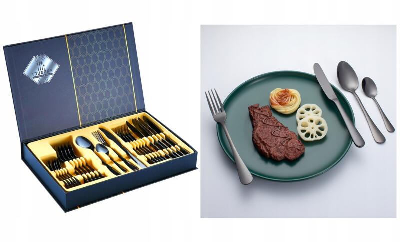 Evőeszköz rozsdamentes acél kpl 24 db 6 Fekete