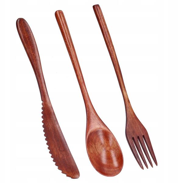 Fa Szett, Többször Használható Fa Evőeszköz Készlet 1 Személy Részére, 3 Db/szett (3118210224311)