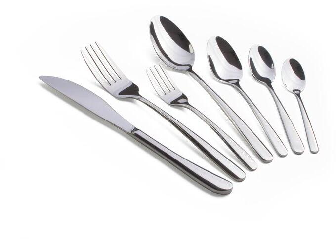 • Obsah balení: 6x jídelní vidlička, 6x jídelní nůž, 6x polévková lžíce, 6x čajová lžička, 6x lžička na presso, 6x dezertní vidlička, 6x lžička na latte