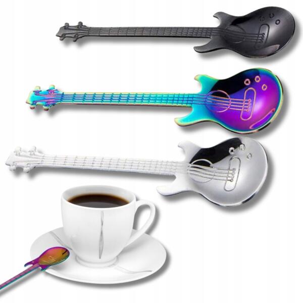 Gadget Master Teás/kávés Kiskanál Szett Gitár Díszítéssel Ajándék Zenészeknek És Gitárosoknak 3 DbALLEGRO