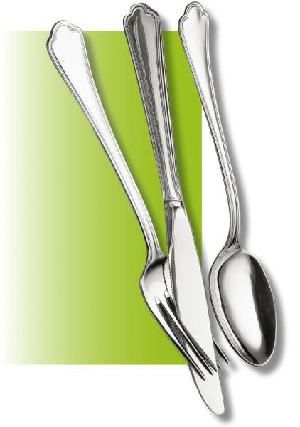Kiváló minőségű rozsdamentes acélból. Tartalma: 6 kanál, 6 villa, 6 kés, 6 kávéskanál, 1 merőkanál - díszdobozban