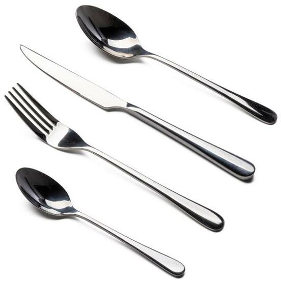 A LAMART LT5039 evőeszközkészlet 24 darabot tartalmaz prémium minőségű rozsdamentes acélból. Ez a kiváló minőségű design sorozat alkalmas mindennapi használatra, és biztonságosan mosható mosogatógépben. Javasoljuk, hogy az evőeszközöket az első használat előtt mossa el, és minden mosás után törölje szárazra.