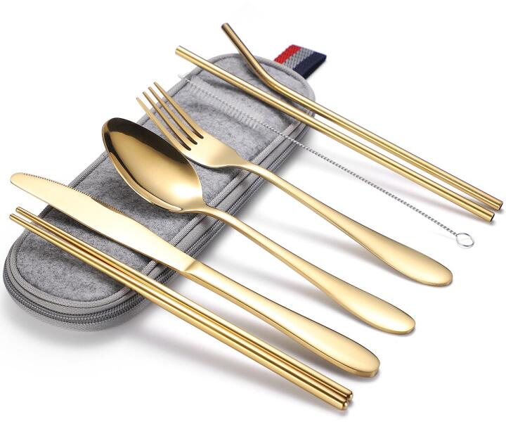 TRENDY S 8 db rozsdamentes acél evőeszköz készlet, utazáshoz és irodai használatra, TRENDY'S, arany (TCM-9G)