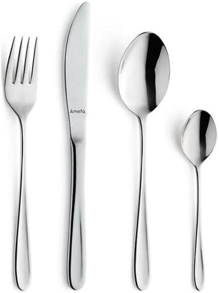 Fényes króm színű rozsdamentes evőeszköz-készlet.