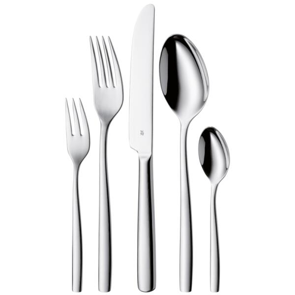 Tulajdonságok A 30 evőeszközből álló, sok fogáshoz alkalmas készlet hat villából, késből, kanálból, desszertvillából és teáskanálból áll. A WMF evőeszközkészletek széles választékát kínálja különféle kivitelben, hogy minden egyedi igényt kielégítsen. A készlet tökéletes kiegészítője a mindennapi vendéglátásnak, és kiegészíthető tálaló illetve egyéb kiegészítő evőeszközökkel - a nagyszerű étkezési kultúra érdekében. Fontos tudnivalókAz erősen polírozott evőeszközök monoblokk késekkel rendelkeznek Ergonomikus kialakítás a lehető legmagasabb kényelem érdekében – minden evőeszköz tökéletesen kiegyensúlyozott a kényelmes kezelés érdekében Anyaga: Cromargan® rozsdamentes acél, amely mérettartó, mosogatógépben mosható, sav-, korrózió- és rendkívül karcálló Tisztítása: mosogatógépben mosható. A csomag tartalma: 6x kanál, 6x villa, 6x kés, 6x kanál, 6x desszert villa